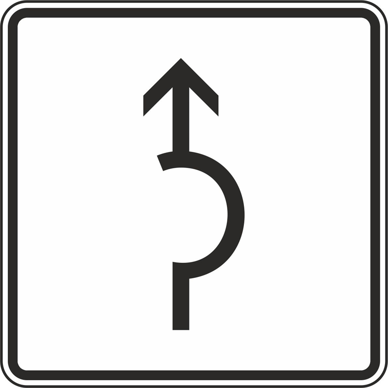 Das Verkehrszeichen 1000-34 „Umleitungsbeschilderung Halbkreis“ ist ein rechteckiges weißes Verkehrsschild mit schwarzem Rand und dem schwarzen Symbol für einen Kreisverkehr mit Pfeil nach oben.