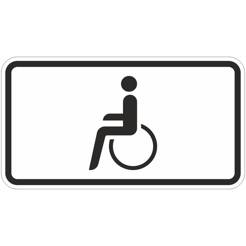 Das Verkehrszeichen 1044-10 „Nur Schwerbehinderte mit außergewöhnlicher Gehbehinderung und Blinde“ ist eine weiße Zusatztafel in Rechteckform mit schwarzem Rand und dem Piktogramm einer im Rollstuhl sitzenden Person.