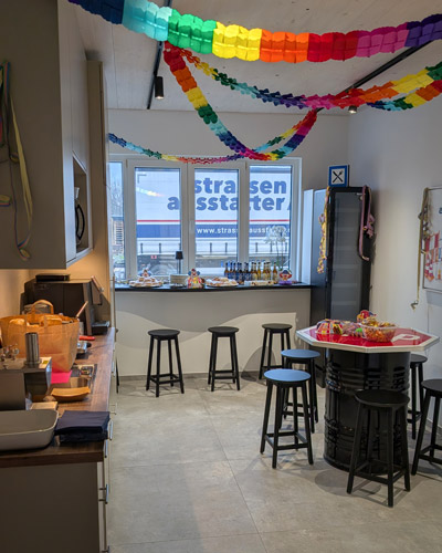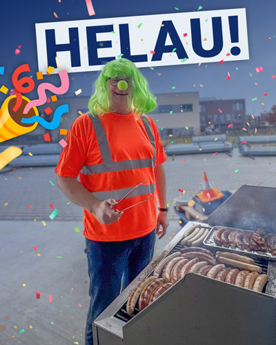 An Altweiber wurde es bunt in unseren Büros und unserer Logistik! Sämtliche Innenräume wurden festlich geschmückt, Christian Roer hat den Grill angeworfen und wer wollte, konnte verkleidet zur Arbeit kommen. In der gemeinsamen Mittagspause stand dann das Miteinander im Vordergrund und bei Würstchen, Berlinern und guter Stimmung kam das ganze Team zusammen.